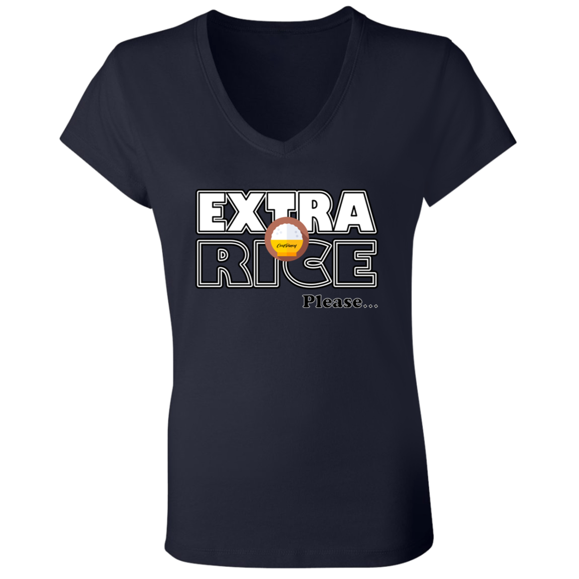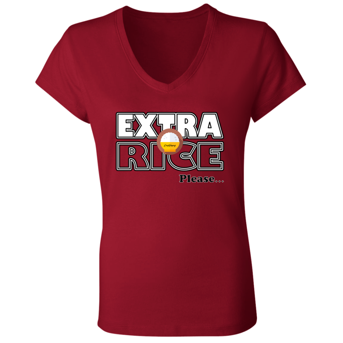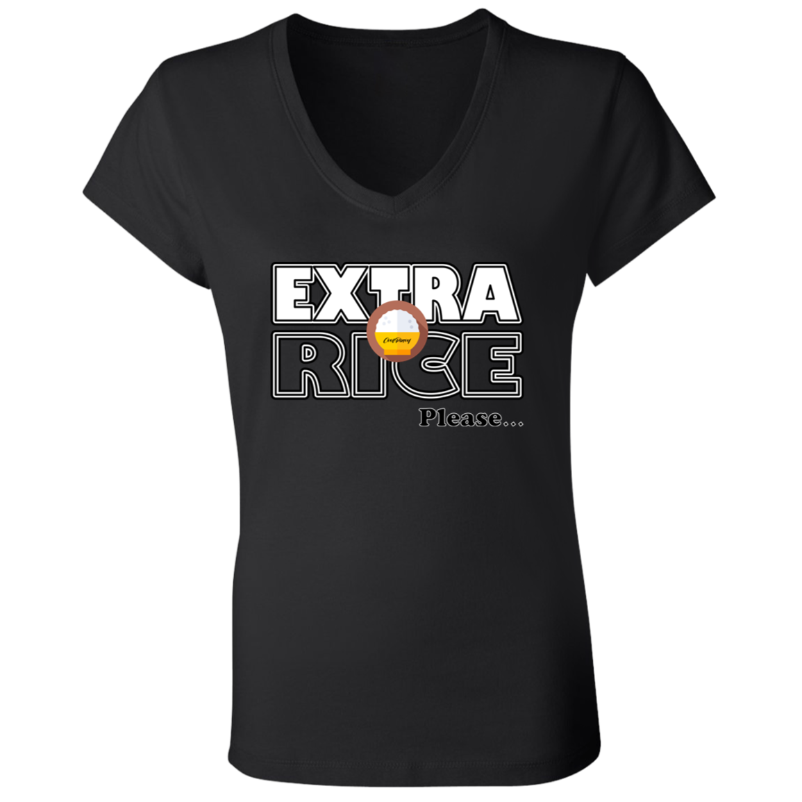 Extra Rice Please Ladies Jersey V-Neck T-Shirt