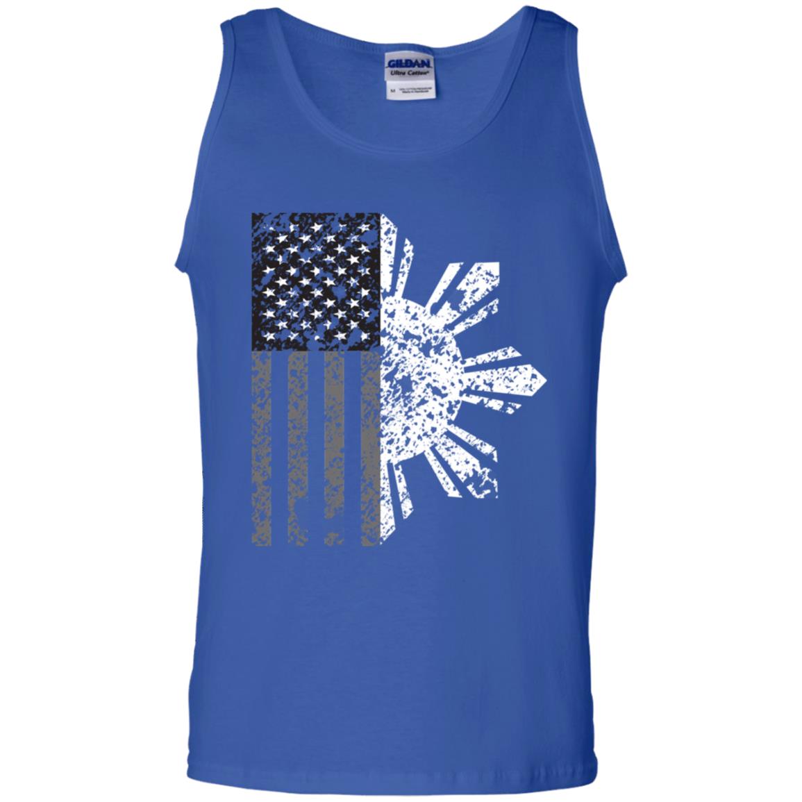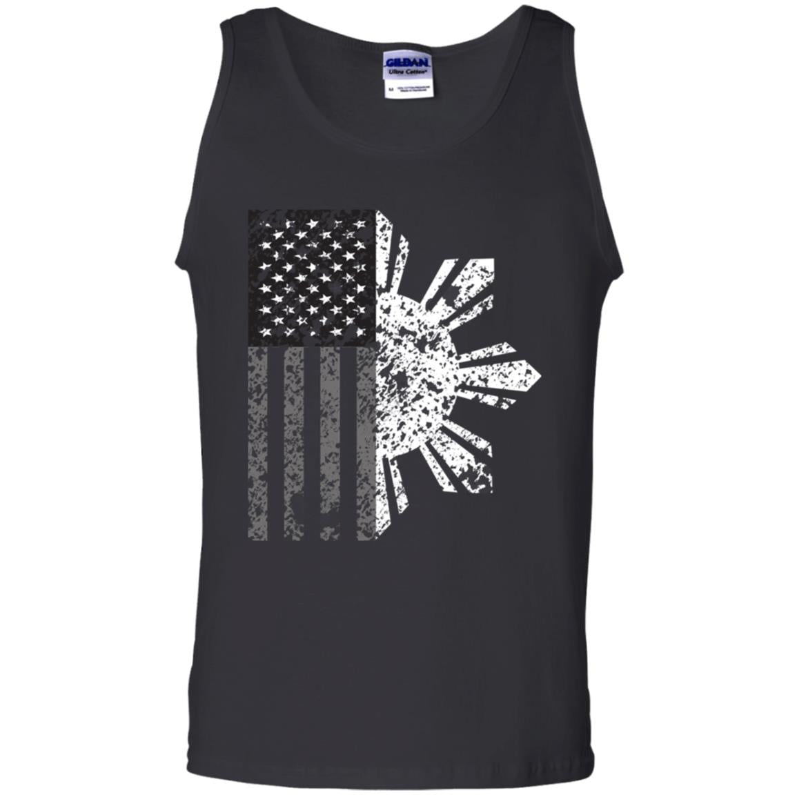 Filipino Sun with American Flag BW Cotton Tank Top