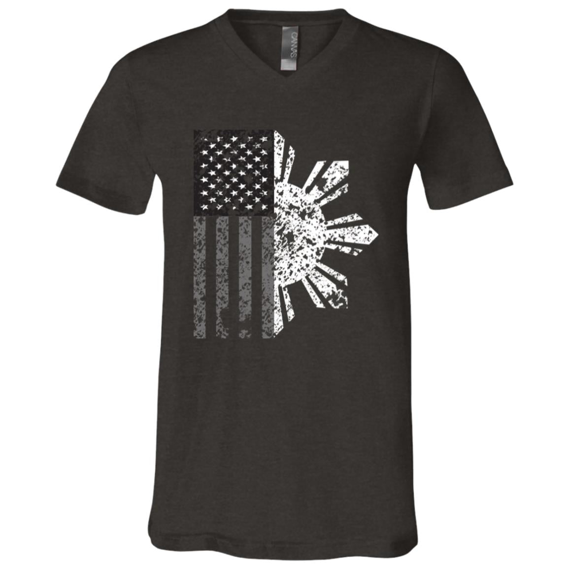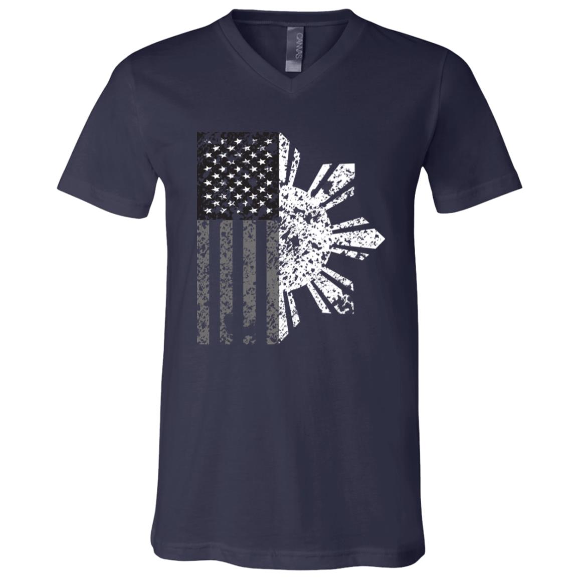 Filipino Sun with American Flag BW Unisex Jersey V-Neck T-Shirt